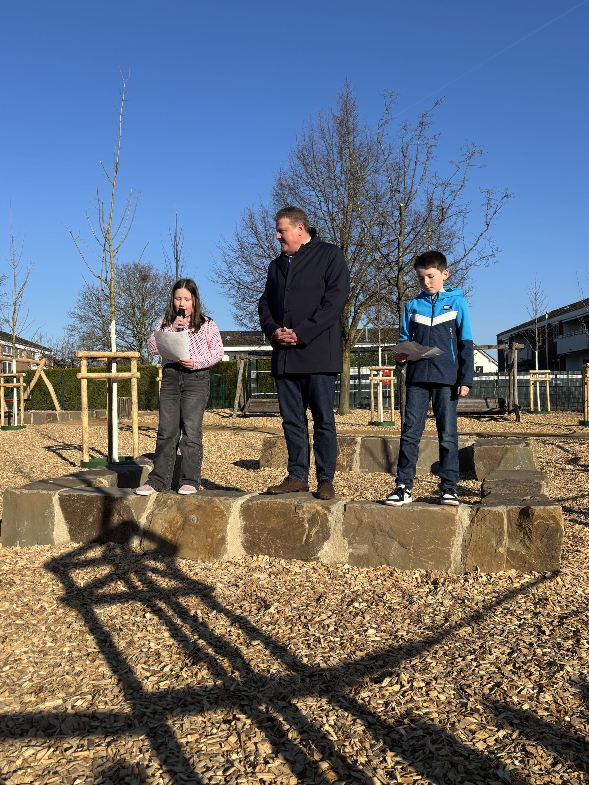 Am Dienstag, 03.03. haben wir gemeinsam mit unserem Bürgermeister Herrn Ricker unseren „neuen“ Schulhof feierlich eröffnet. Der Schulchor hat unser Schullied gesungen und Herr Ricker sowie unsere Kindersprecher:innen haben kleine Reden gehalten. Anschließend gab‘s Hotdogs für alle. 420 m² wurden entsiegelt und neu gestaltet. Klimaresiliente Bäume machen den Schulhof grüner und werden zukünftig Schatten spenden. [...]